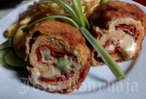 A hússzeleteket kevés olajon serpenyőben szép pirosra sütjük.