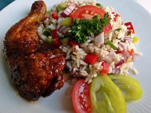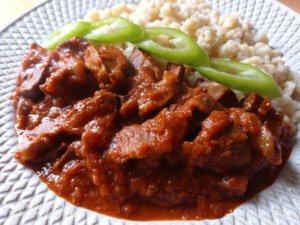 A zúzát alaposan megtisztítjuk, megmossuk, majd kockákra vágjuk. A vöröshagymát, paprikákat, paradicsomot szintén felkockázzuk. A fokhagyma gerezdeket a kés lapjával szétnyomjuk, rászórjuk a köményt és együtt apróra vágjuk. Az egész köménynek intenzívebb az íze és a fokhagymával együtt vágva nem pattog szét.