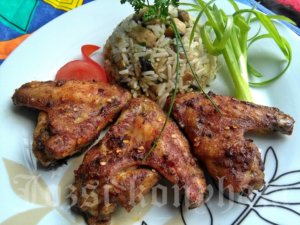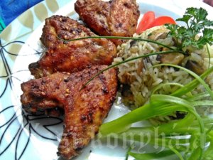 A húst felgöngyöljük, majd szorosan alufóliába csavarjuk. A tekercseket tepsibe vagy grillrácsra helyezzük, és közepes lángon /légkeveréses sütőben 170-180 fok, 45-50 perc alatt /megsütjük.